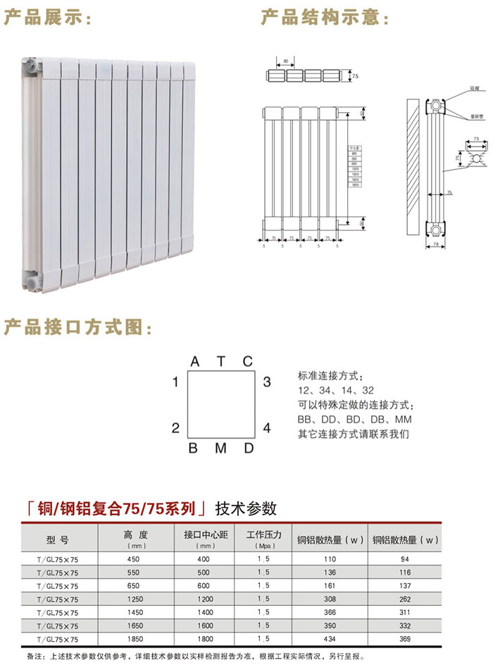 名称:75/75铜铝复合散热器